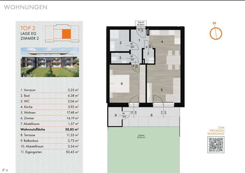 - Wohnfläche: 50,85 m²