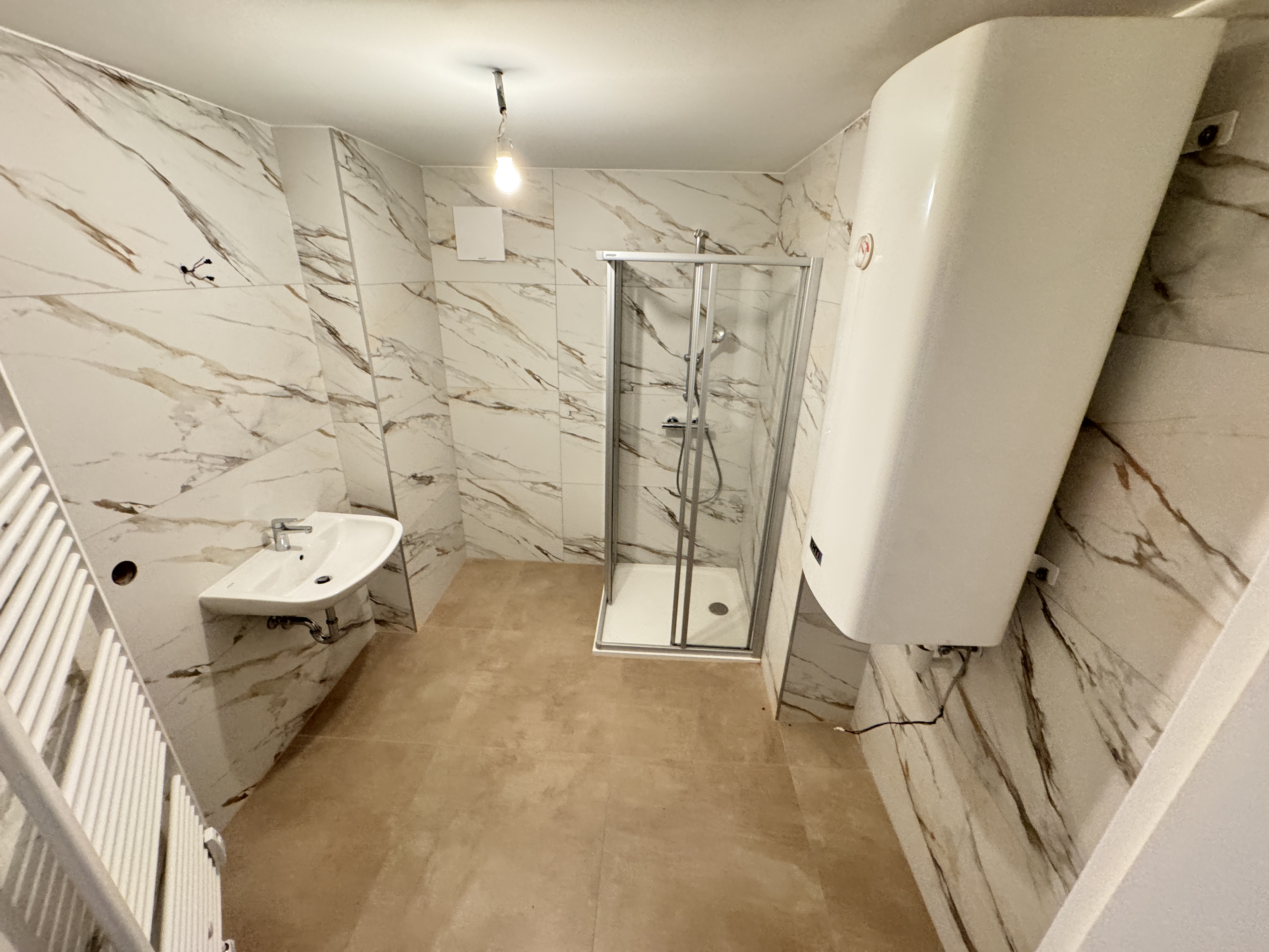 - Badezimmer mit Badewanne und Waschmaschinenanschluss