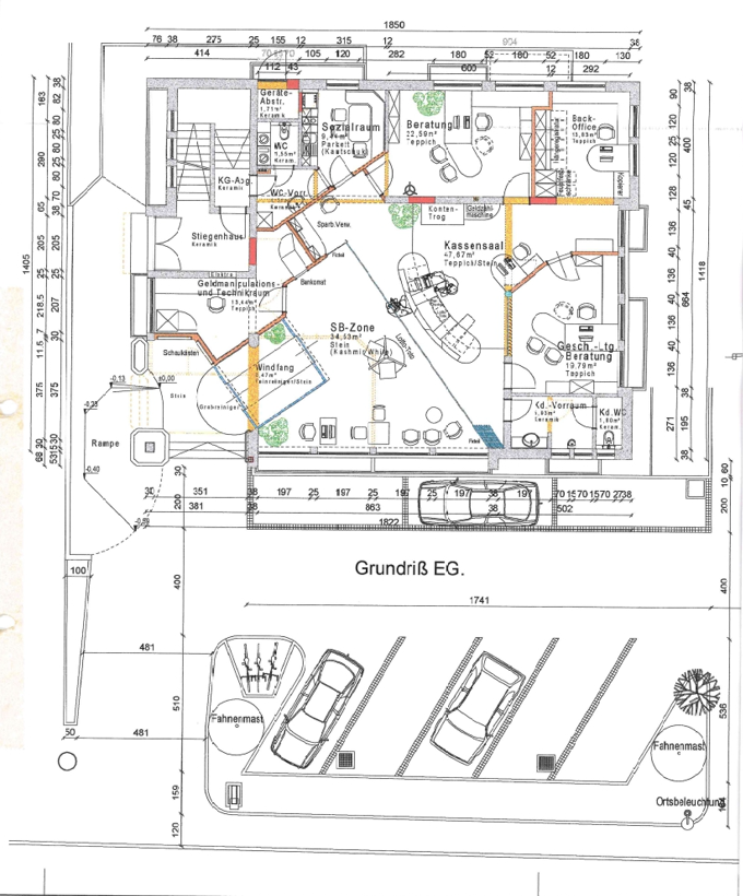 Direkt vor dem Objekt befinden sich Parkplätze, die sowohl Kunden als auch Mitarbeitern einen komfortablen Zugang zur Gewerbefläche ermöglichen.