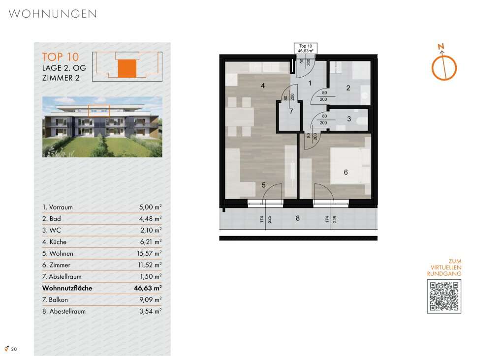 - Wohnfläche: 46,63 m²