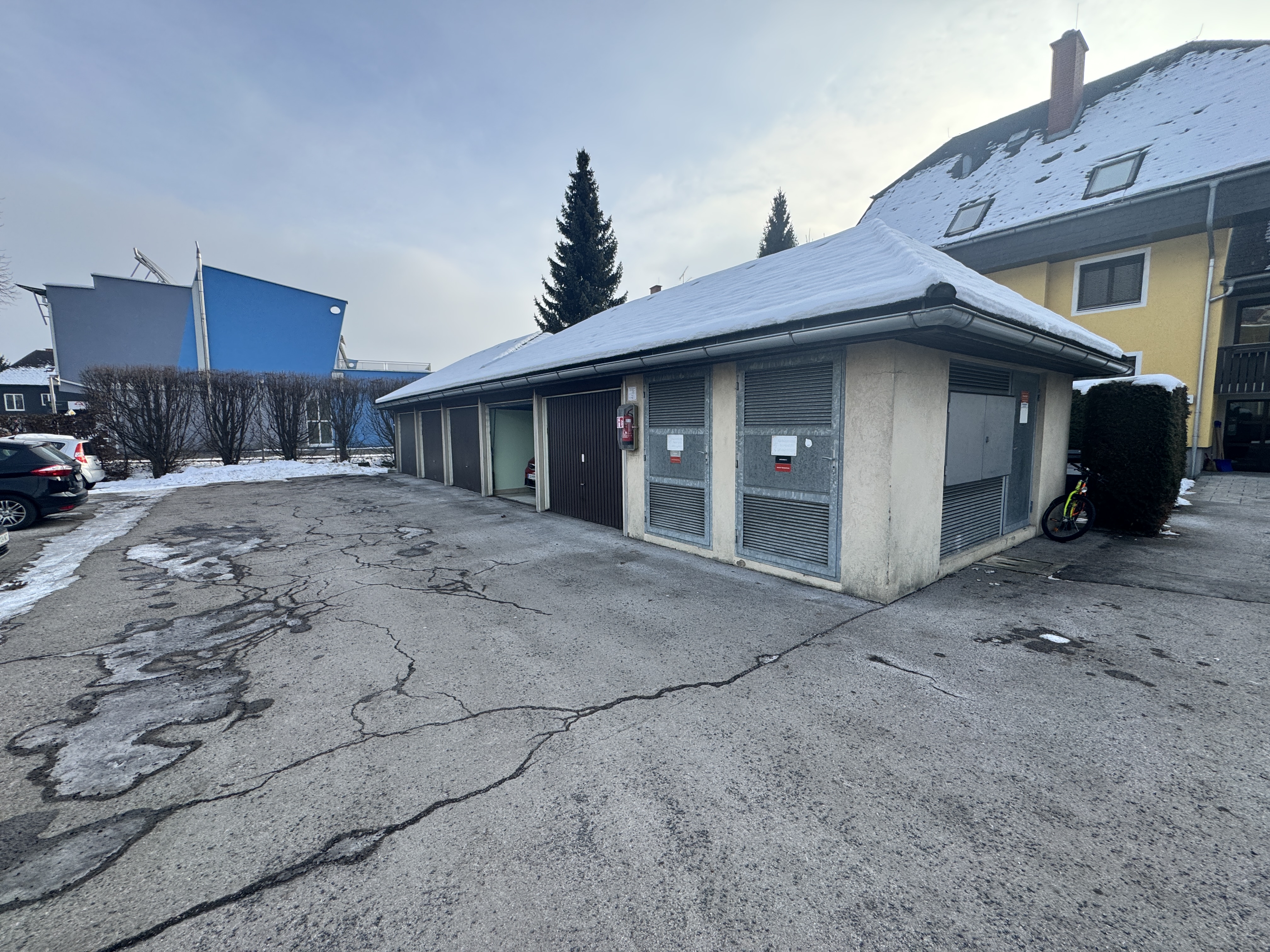 - Garagen befinden sich im Nebengebäude und können angemietet werden, zusätzlich besteht die Möglichkeit, ein Carport beim Nachbarn gegen Aufpreis anzumieten.