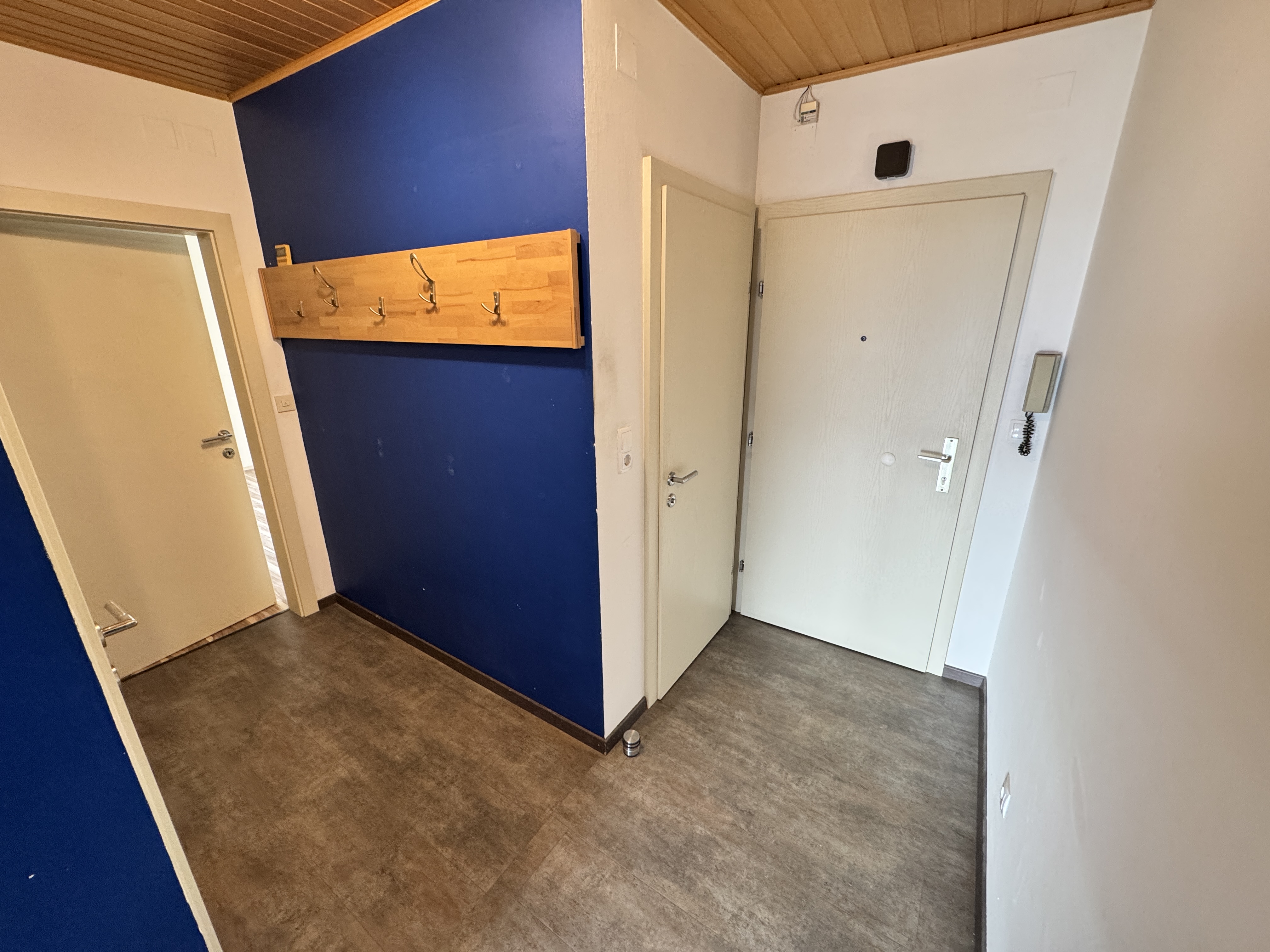 Der Vorraum ist geräumig und bietet Platz für Garderobe und Stauraum. Alle Räume der Wohnung sind von hier aus zentral begehbar.