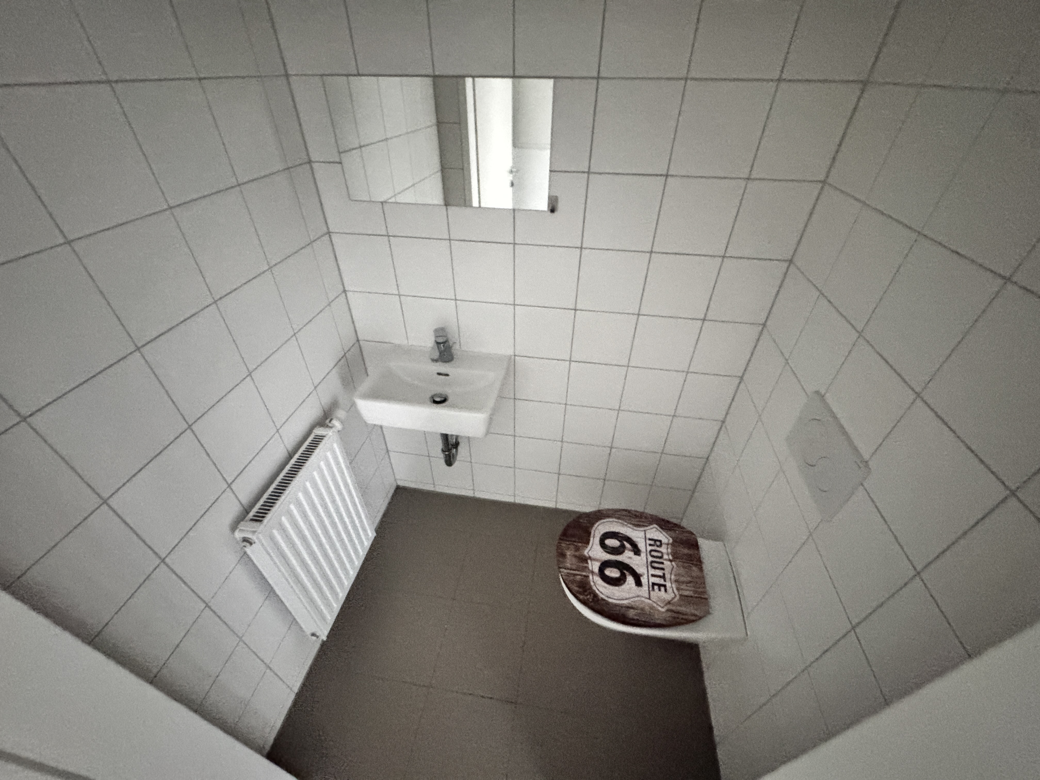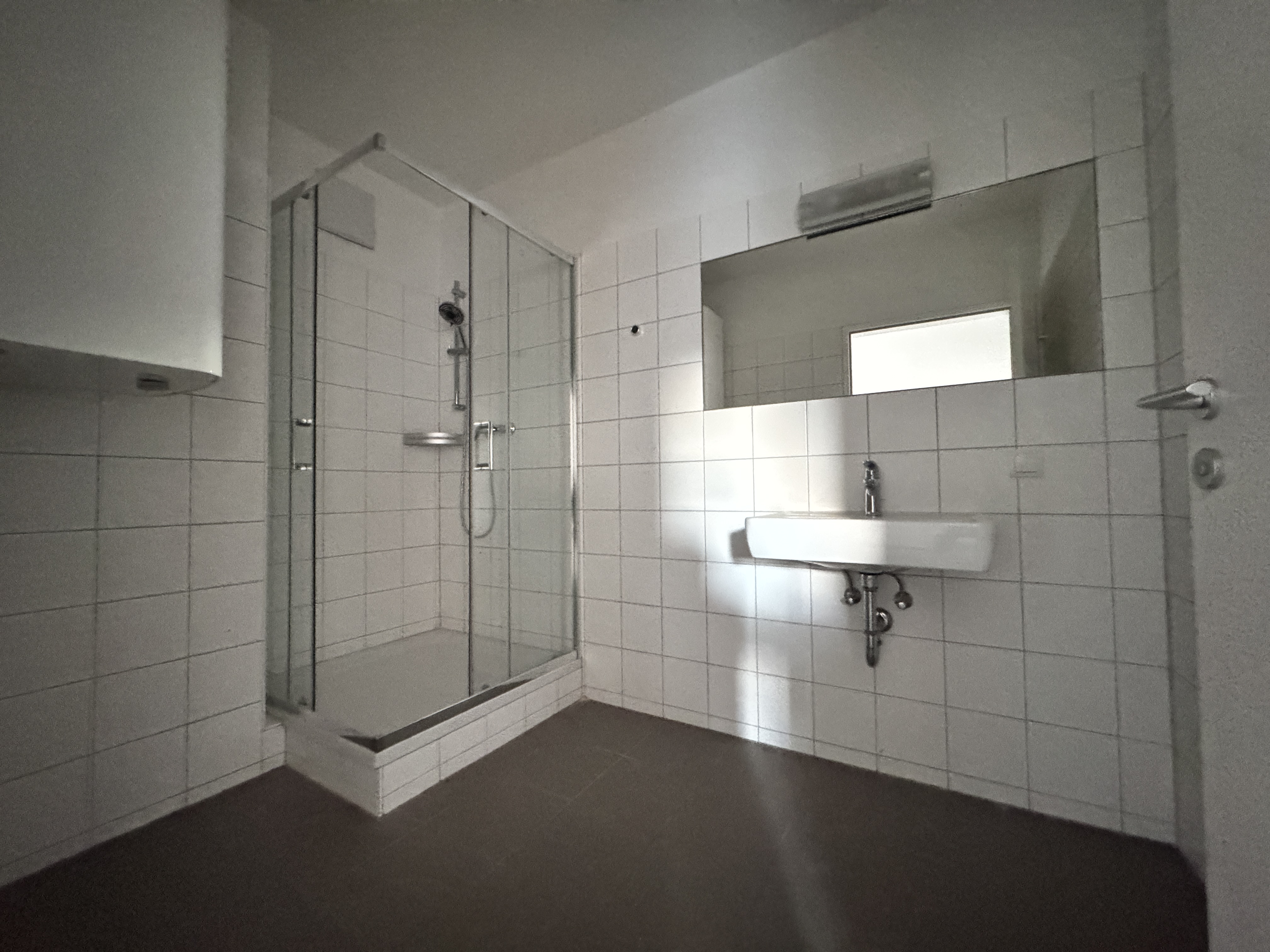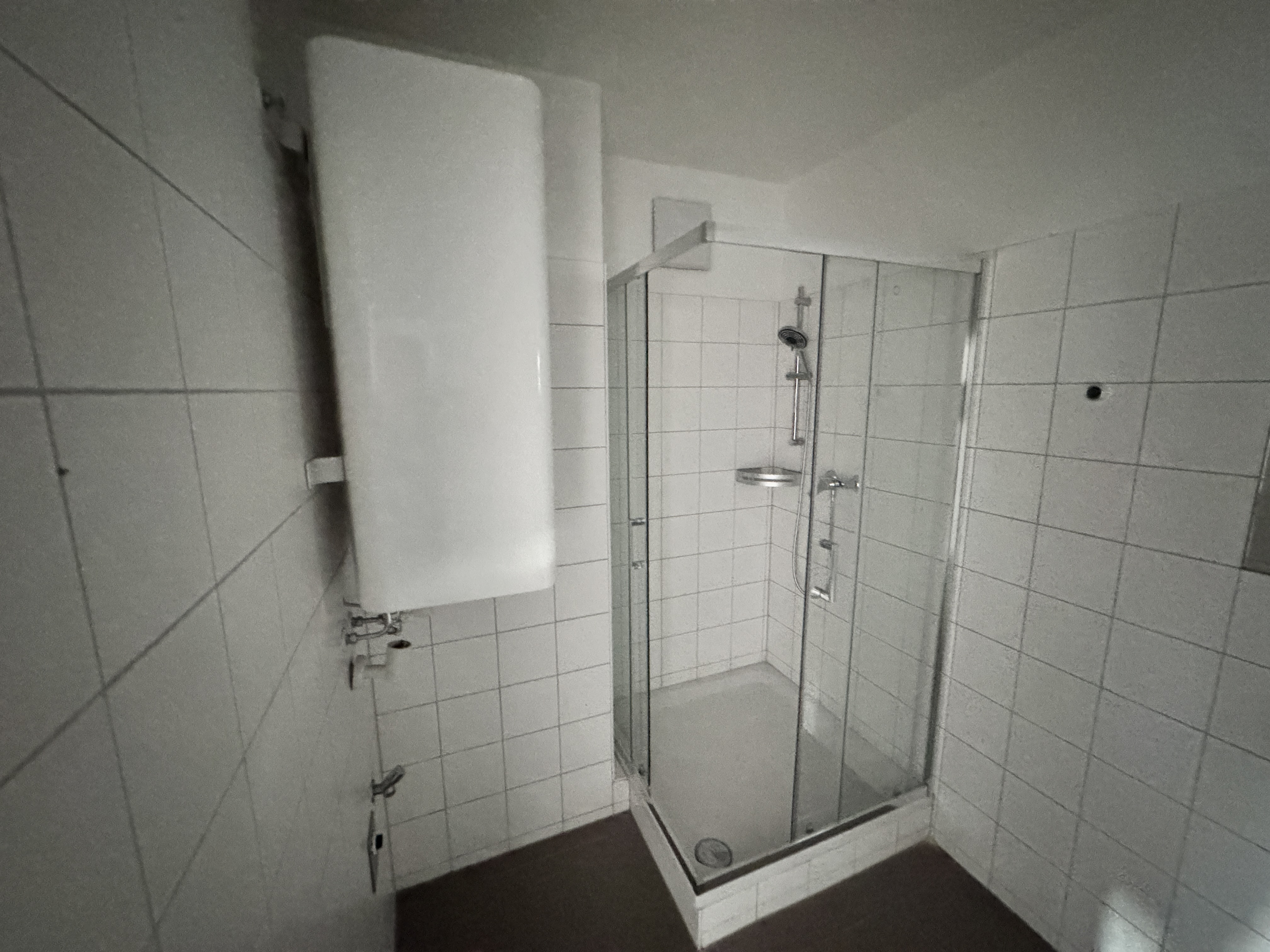 - Badezimmer mit Dusche, Warmwasserboiler und Waschmaschinenanschluss
