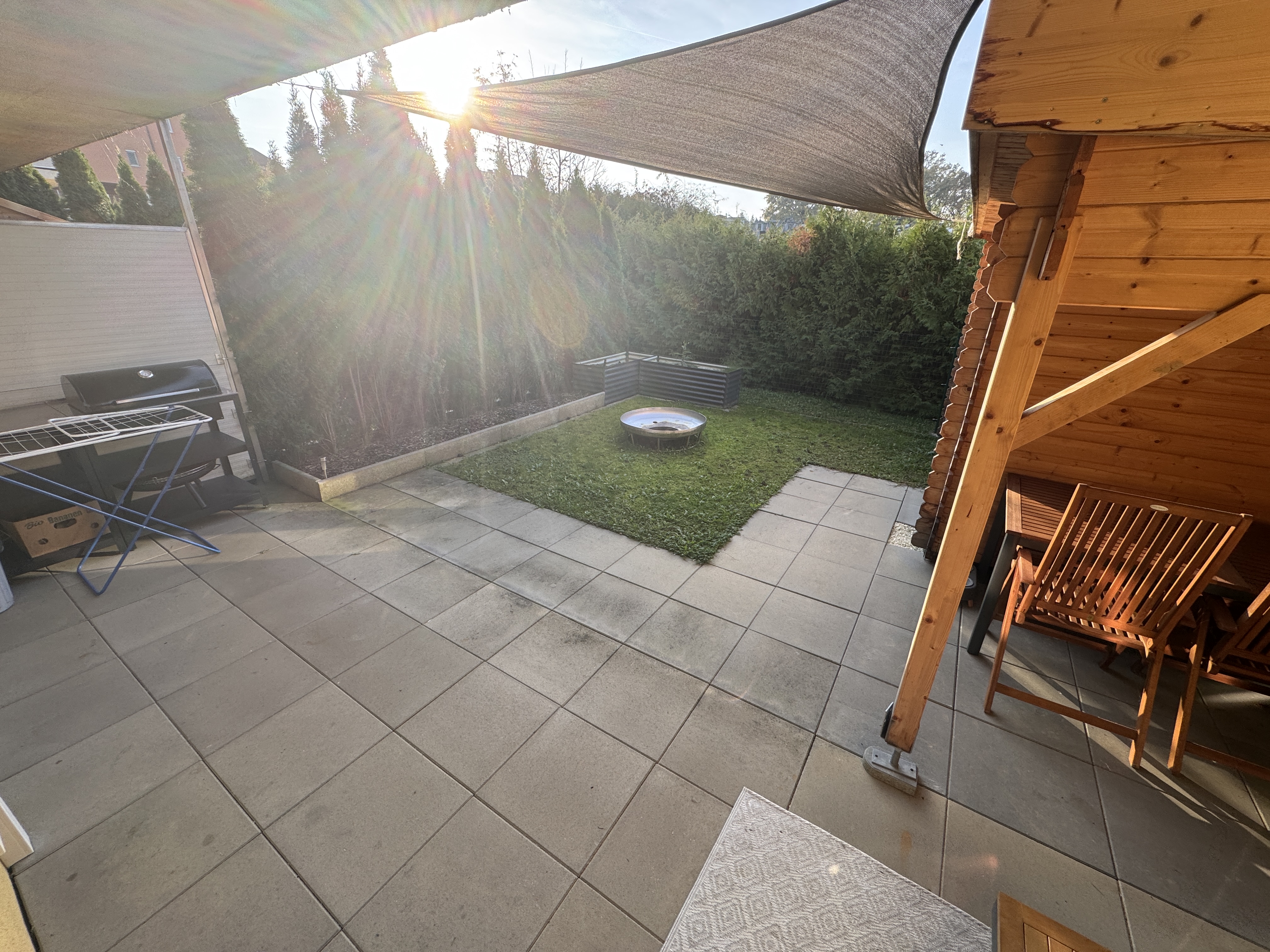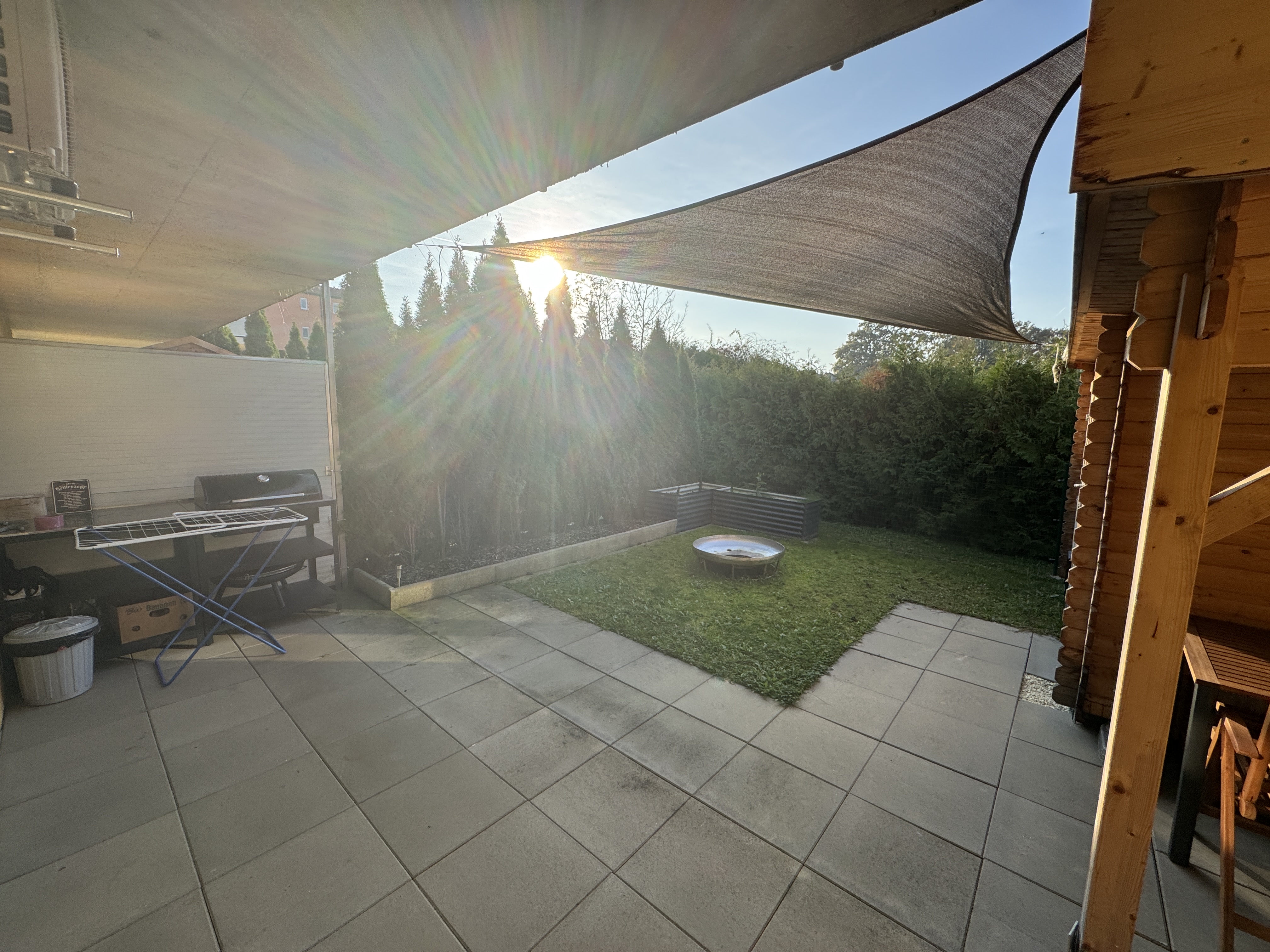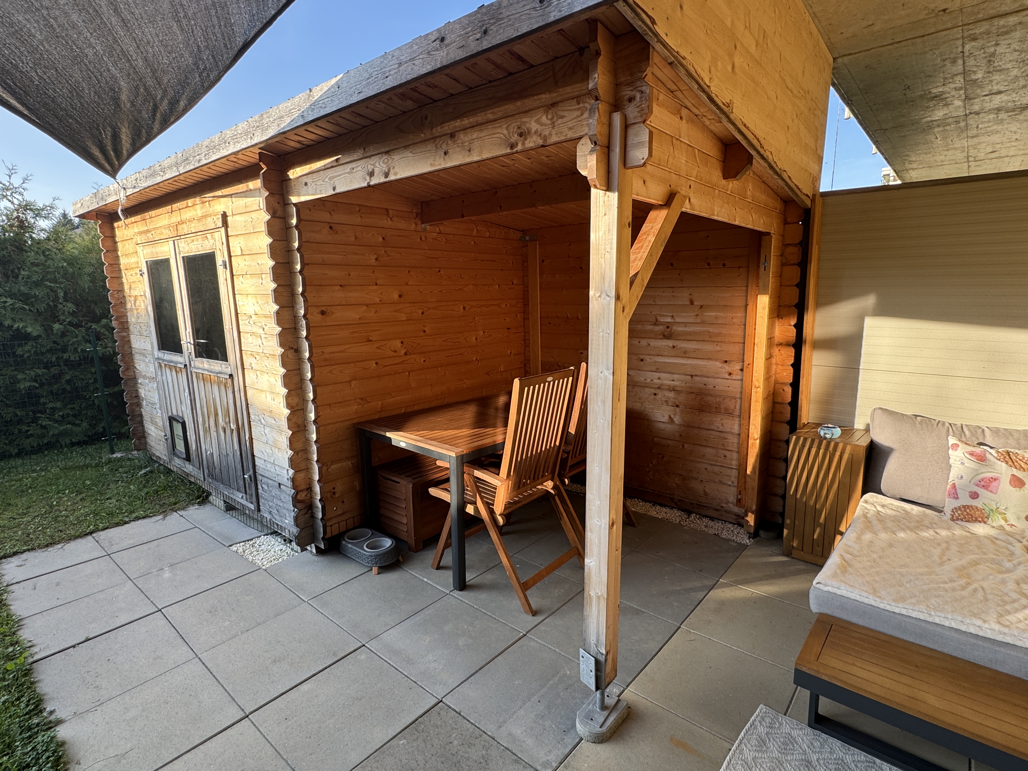 - Terrasse mit ca. 14,44 m² Garten mit ca. 56,94 m² inklusive Gartenhütte (Lagerraum)