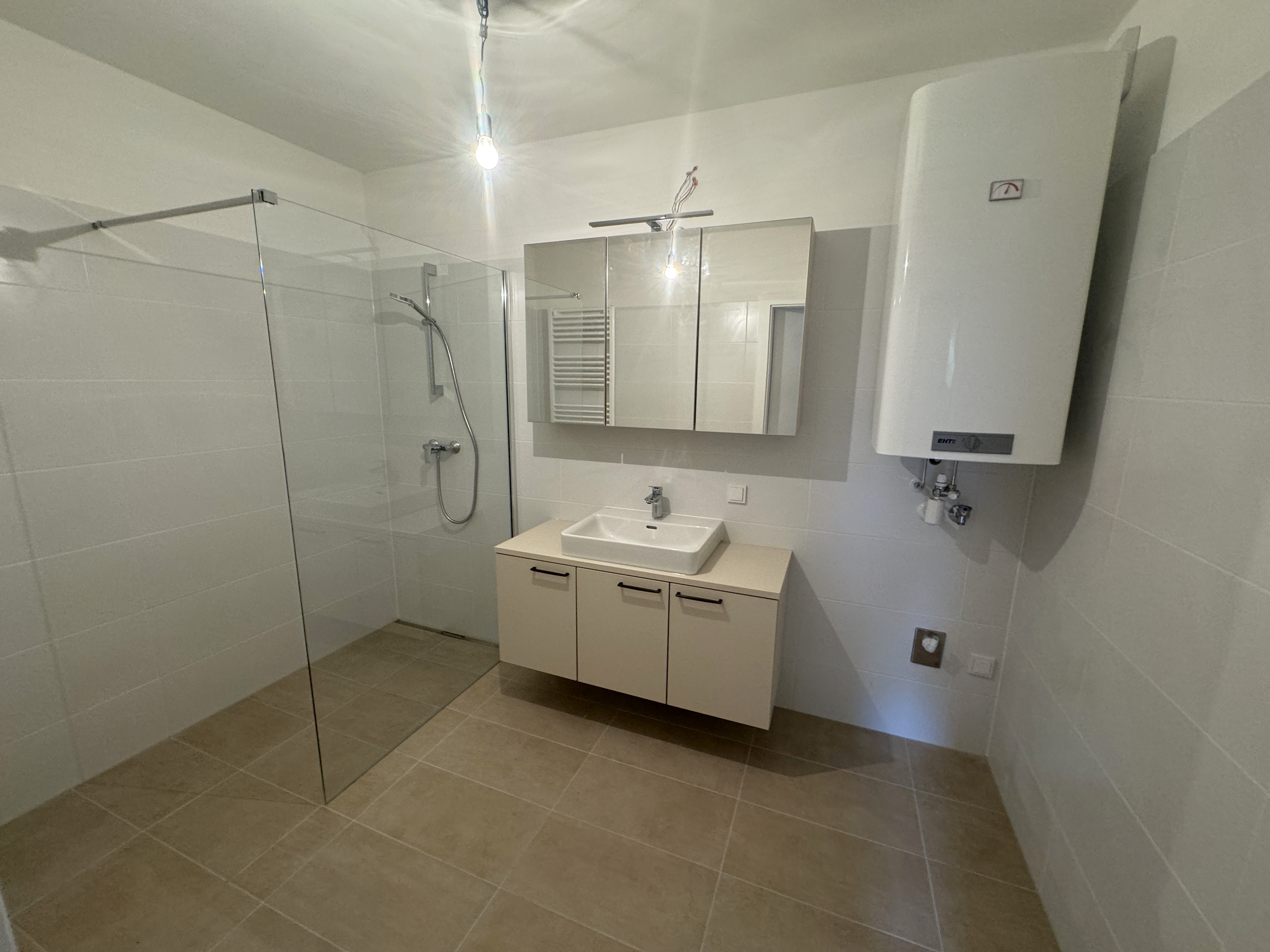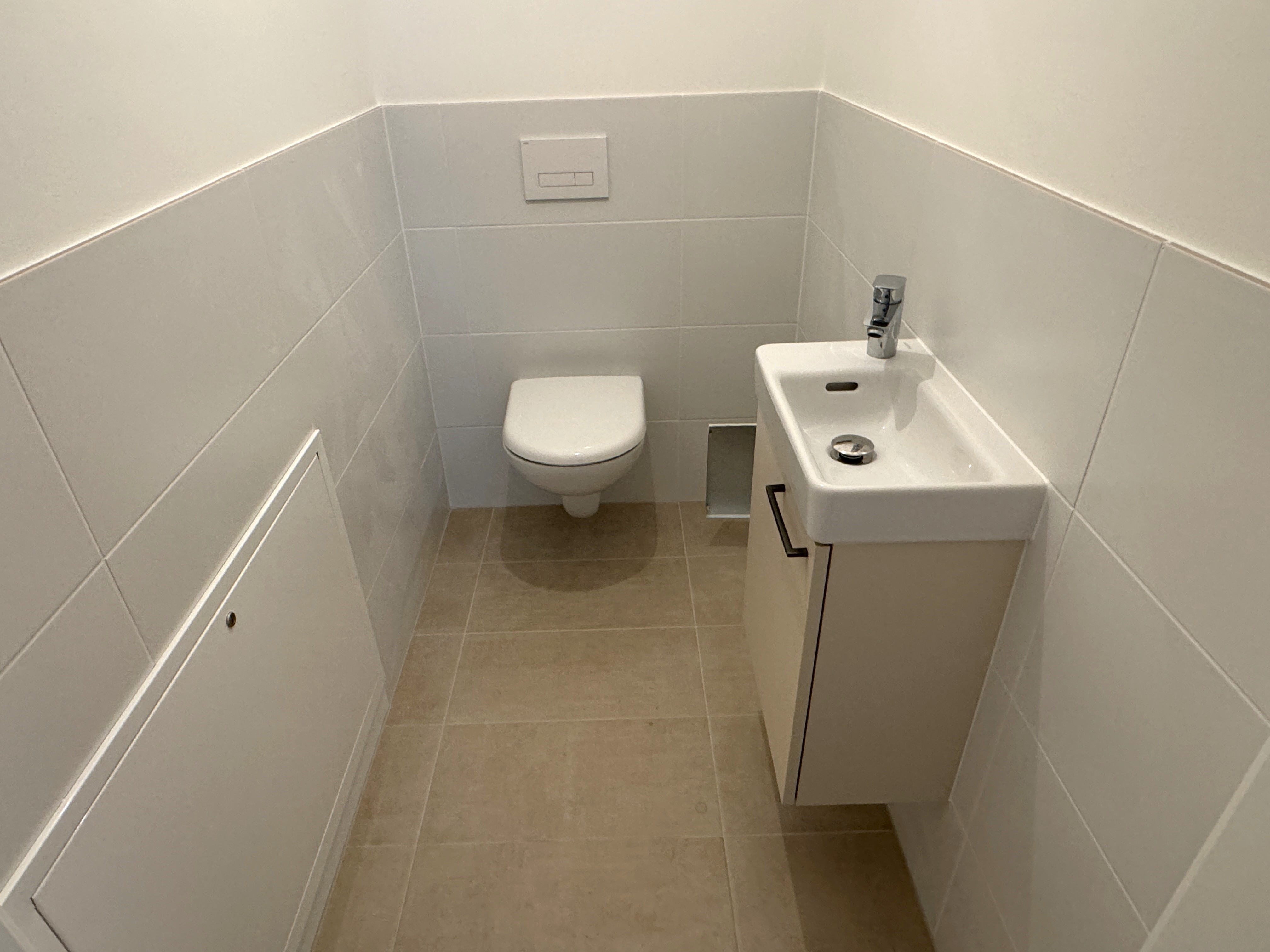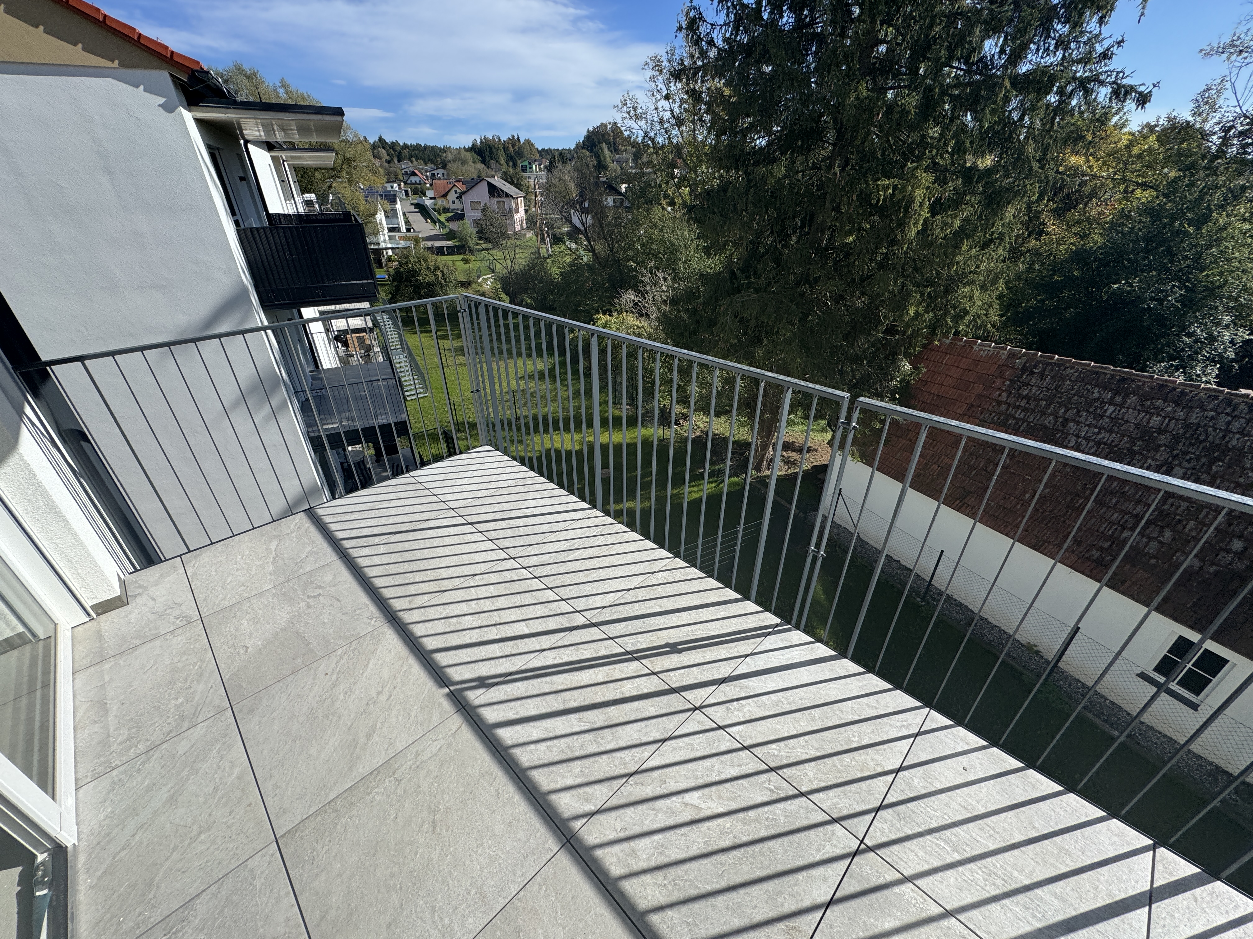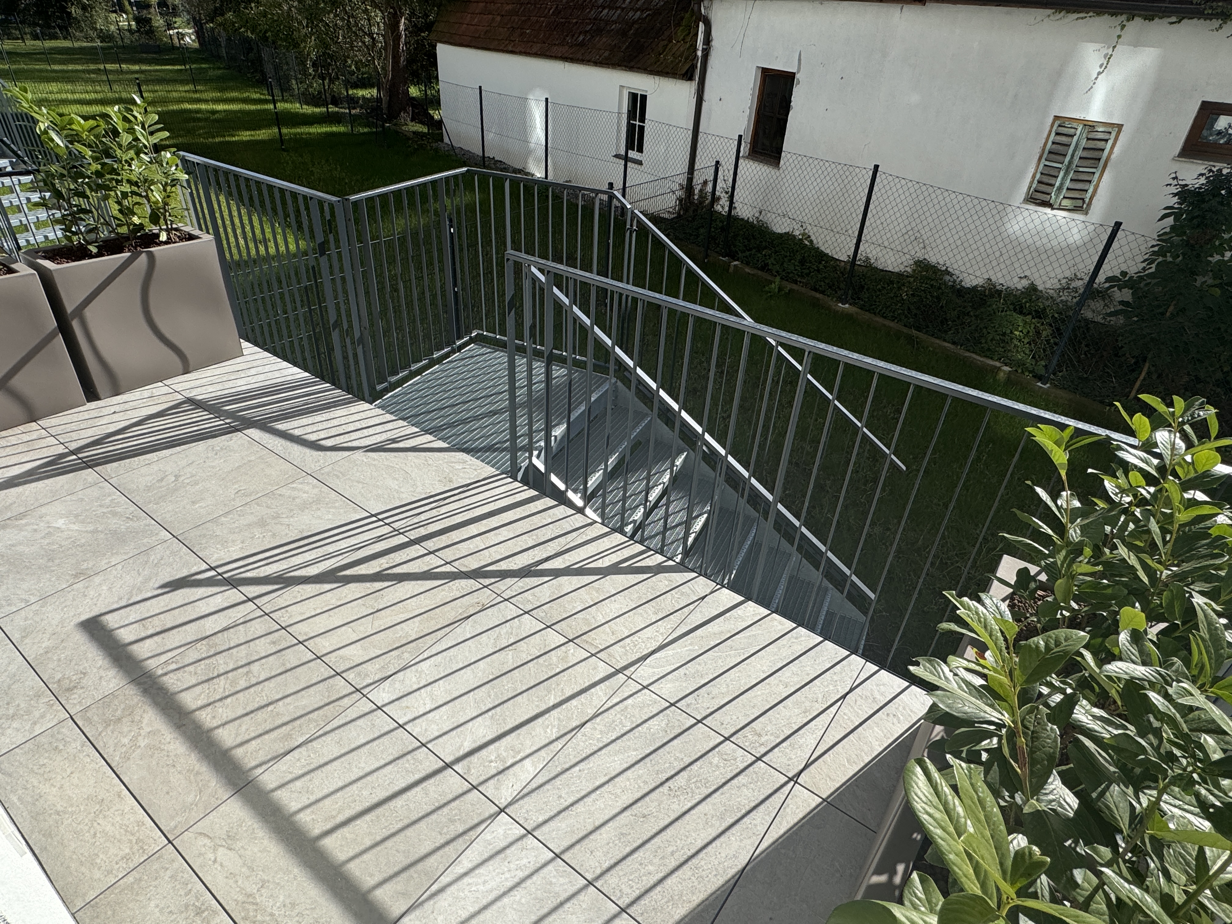 Ein schöner Parkettboden ziert den Wohnbereich, die Sanitärräume wurden mit Fliesen versehen. Auf den Terrassen und Balkonen wurden Betonplattenbeläge verlegt.