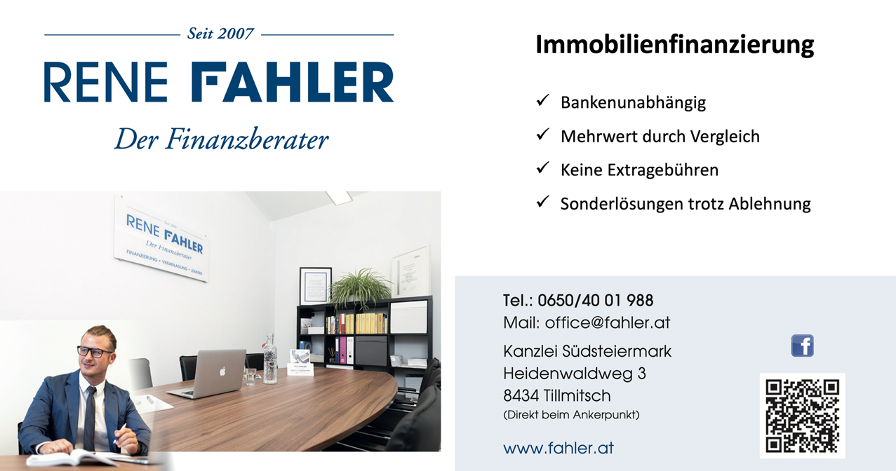 Wir bieten über unseren Finanzberater leistbare Finanzierungen unter 4 % Fixzinssatz! Auch Sonderlösungen wie zB längere Laufzeiten, 100 % Kaufpreisfinanzierungen usw. sind möglich.
