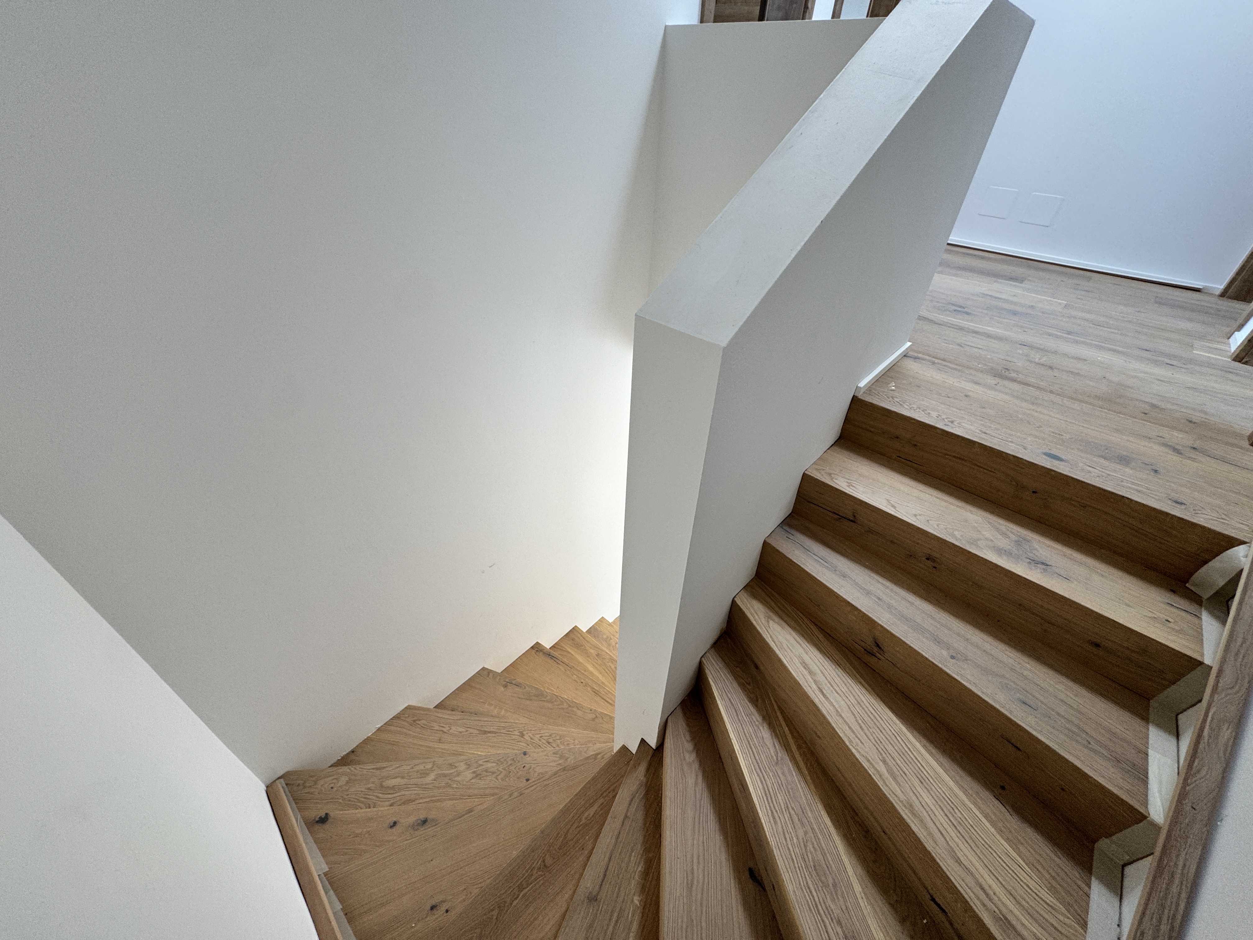 Die Sanitärräume wurden mit großflächigen und geschmackvollen Fliesen ausgeführt, die Wohnräume wurden mit hochwertigen Parkettboden (Landhausdielen) ausgestattet.