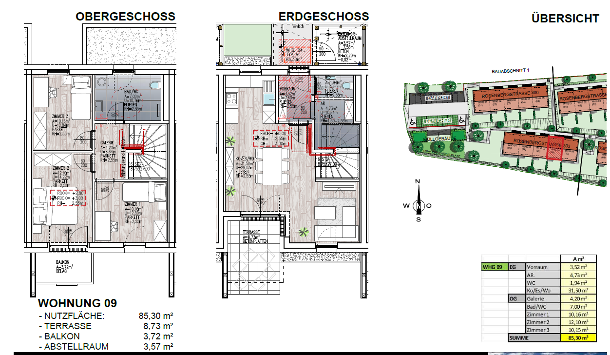 Mit ca. 85,30 m² Wohnfläche, 4 Zimmern, Balkon, Terrasse und Eigengarten bieten die Häuser viel Platz und Flexibilität.