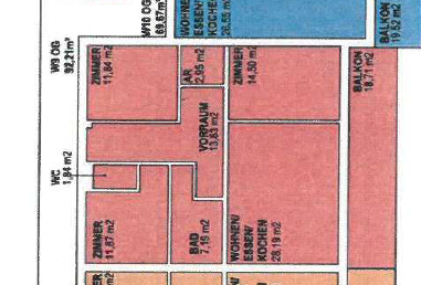 Die Wohnung befindet sich im 1. Obergeschoß und bietet 92,21 m²: